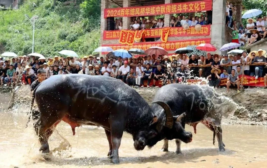 独峒镇岜团水上斗牛节