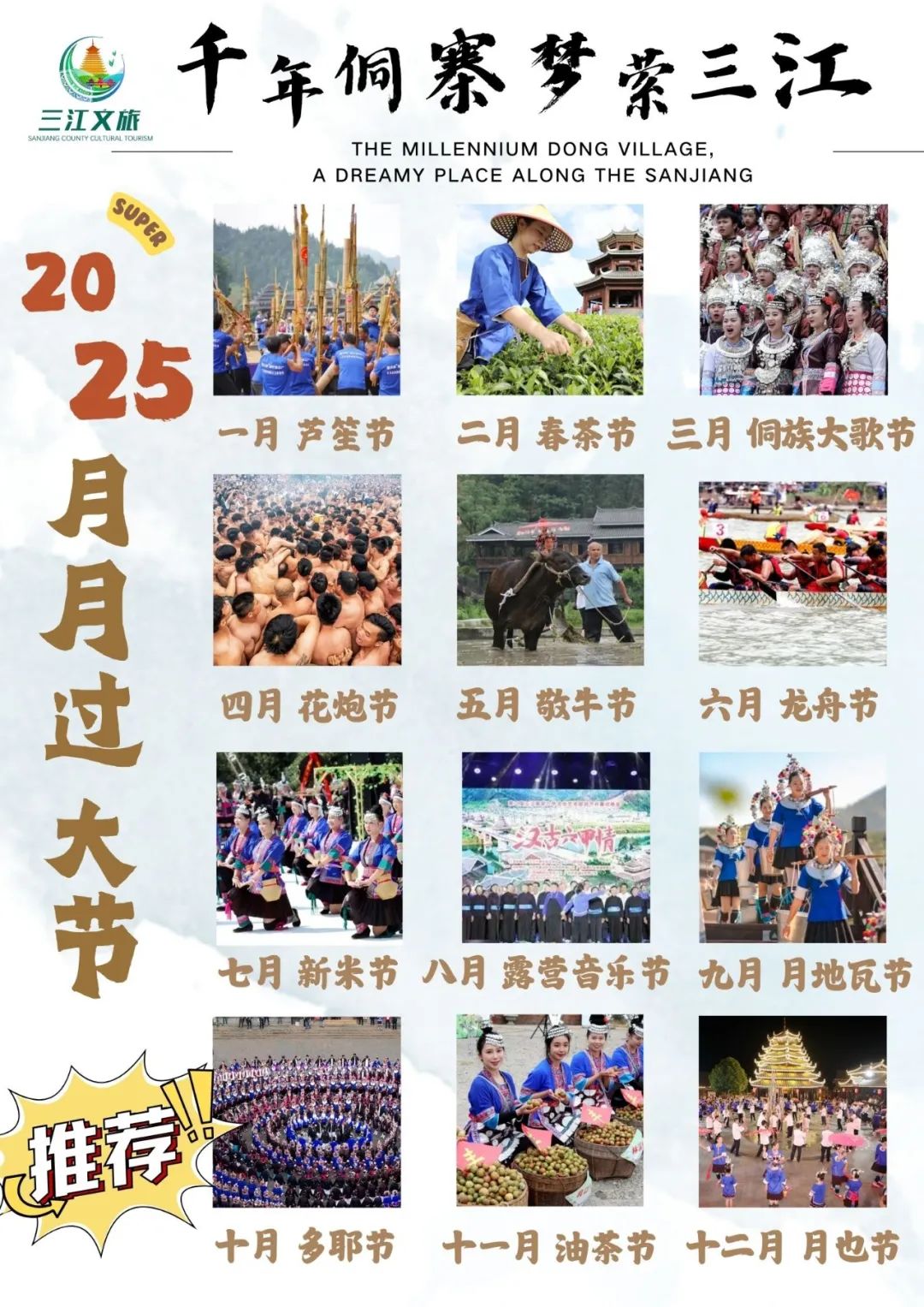 在神秘而美丽的三江侗族自治县,每月都洋溢着浓厚的民族气息和欢乐的氛围。2025年,我们精心策划了“月月过大节”活动,诚邀您来体验这份独特的魅力。赶紧规划起2025年三江出行计划吧!