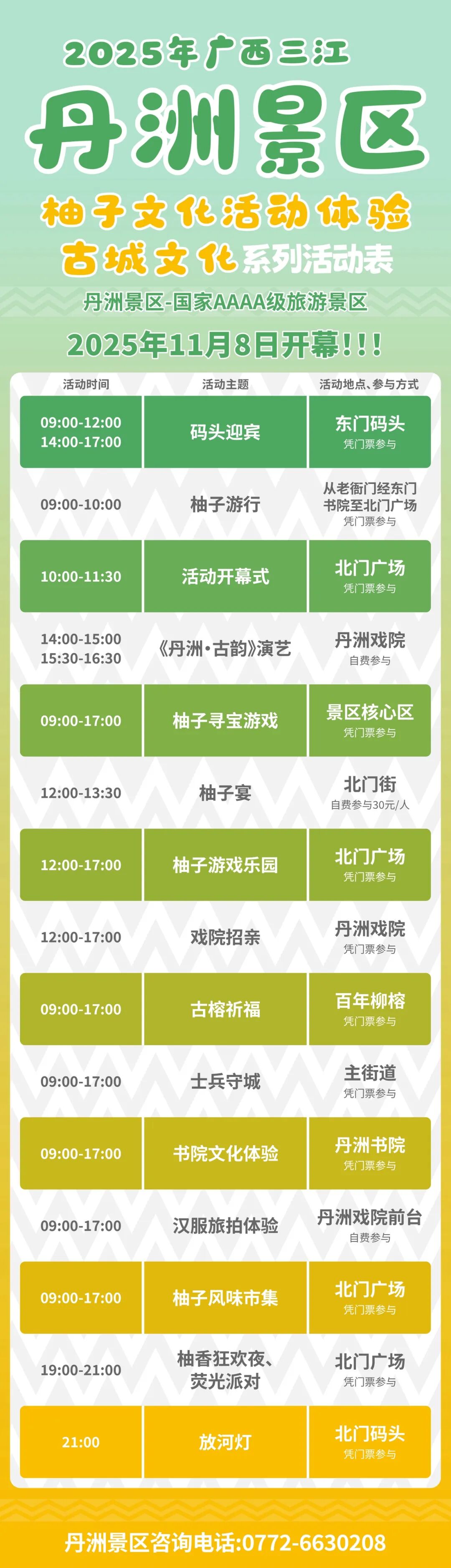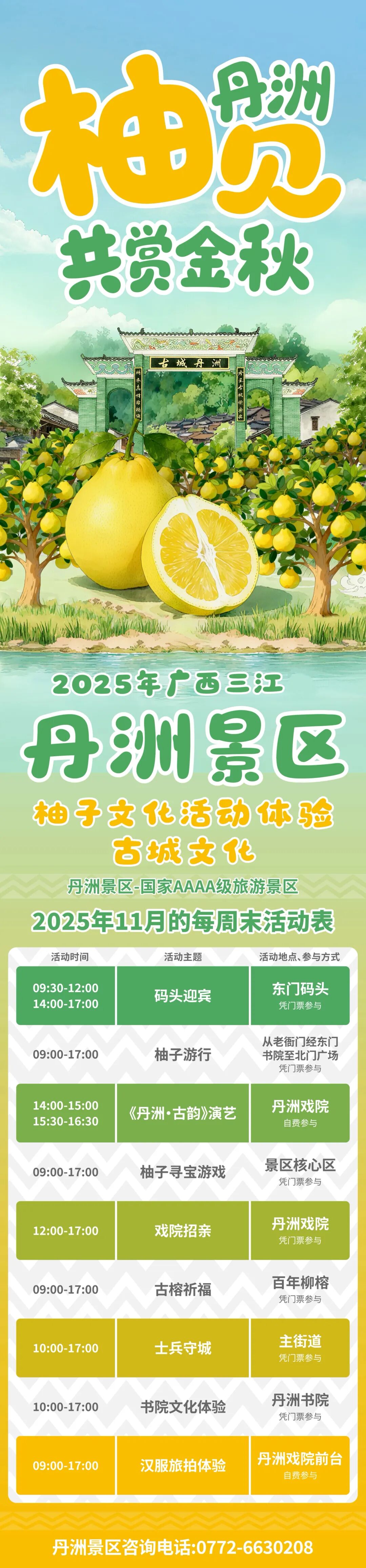 1 月的三江,是被糯叽叽与甜蜜包裹的天堂!11 月 8 日,两大重磅活动同步启幕 —— 丹洲景区 “柚见丹洲・共赏金秋” 柚子文化活动,与2025年金秋时节举办“乡村振兴红糯香”第三届侗族红糯文化活动,一米一柚、一糯一甜,带你解锁三江秋日的双重惊喜!